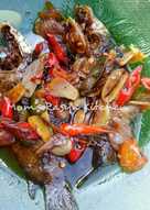 Tunggu hingga bumbu berbau harum. Cuci bersih dan potong bahan yang ingin di buat wadi ikan sungai tadi seukuran separuh telapak tangan orang dewasa kemudian campurkan dengan pelengkapnya serta penyedap gula dan garam secukupnya. Cabe rawit biarkan utuh - 10 buah.